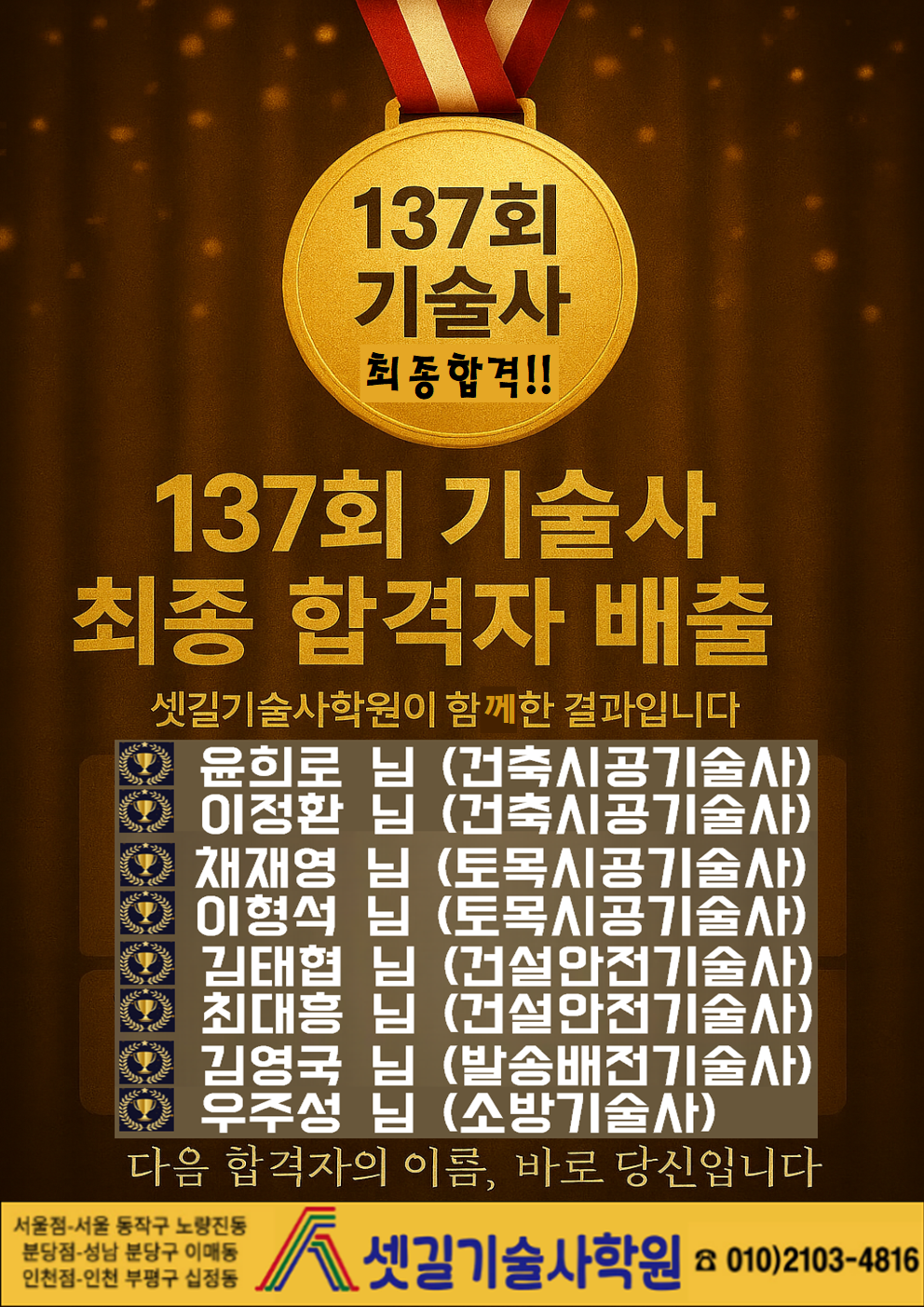 셋길기술사학원 덕분에 더욱 빛날 수 있었습니다.